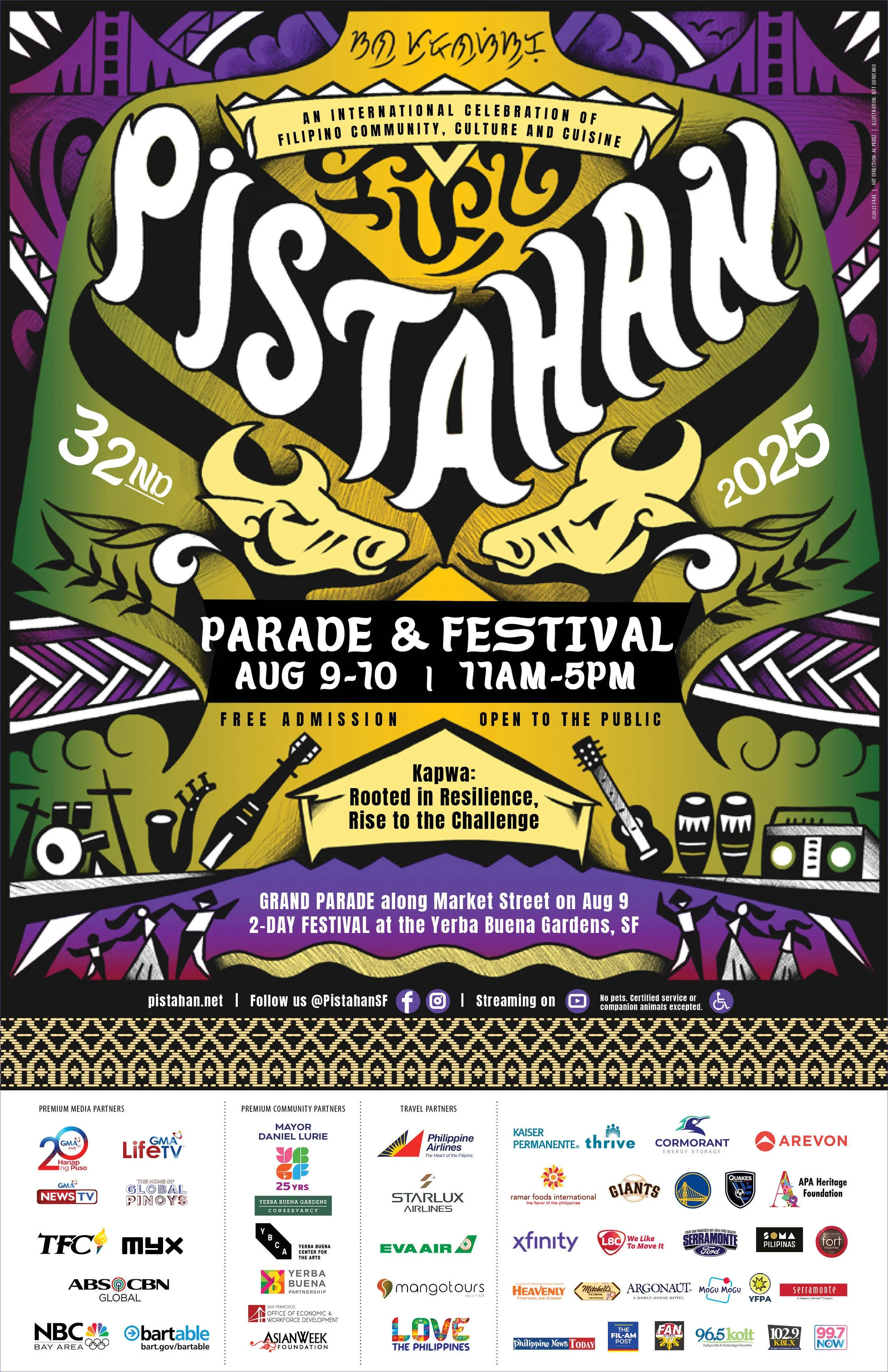 ALL FOR ONE, FUN FOR ALL: Join us for the 32nd Annual Pistahan Parade and Festivalβthe largest Filipino celebration outside the Philippinesβhappening in downtown San Francisco! This vibrant, two-day event celebrates Filipino community, culture, and cuisine, where Filipino pride comes alive.